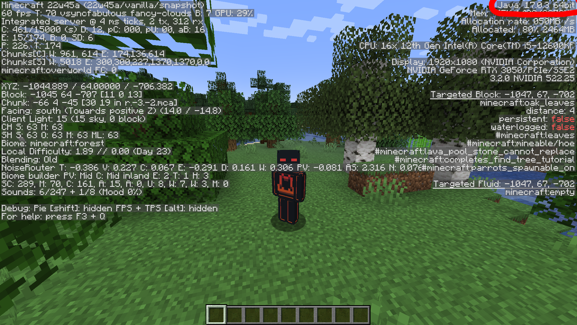 The game doesn't use the custom java set in the launcher. I set the java to C:\Program Files\Eclipse Adoptium\jdk-17.0.5\bin\javaw.exe and when opening F3 it said 17.0.3 which is the default launcher. I also tried Java 17.0.5 from Oracle and it still didn't work.