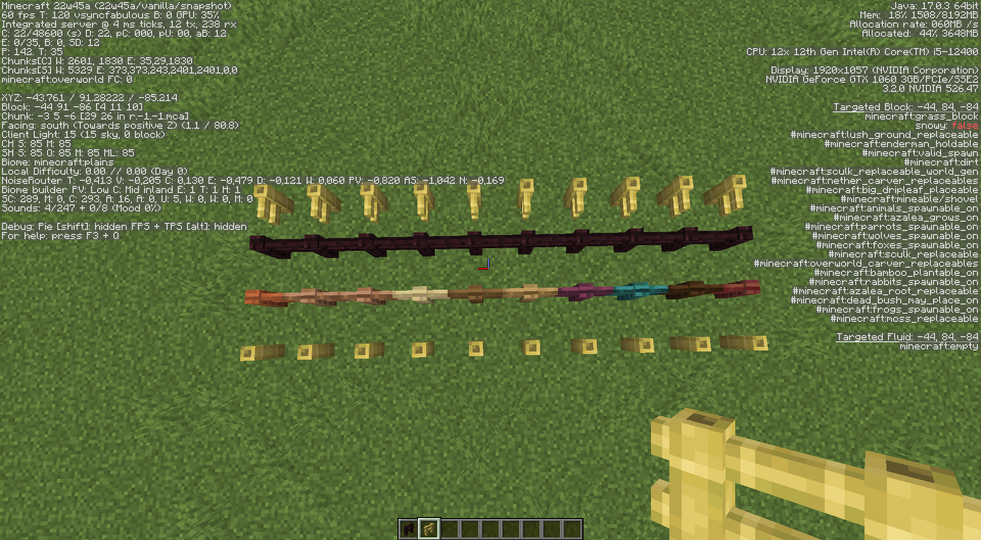 I created the world in 22w45a. Enabled the experimental data packs. Took the items from the creative inventory and placed them down. No commands were used to obtain the fence posts.