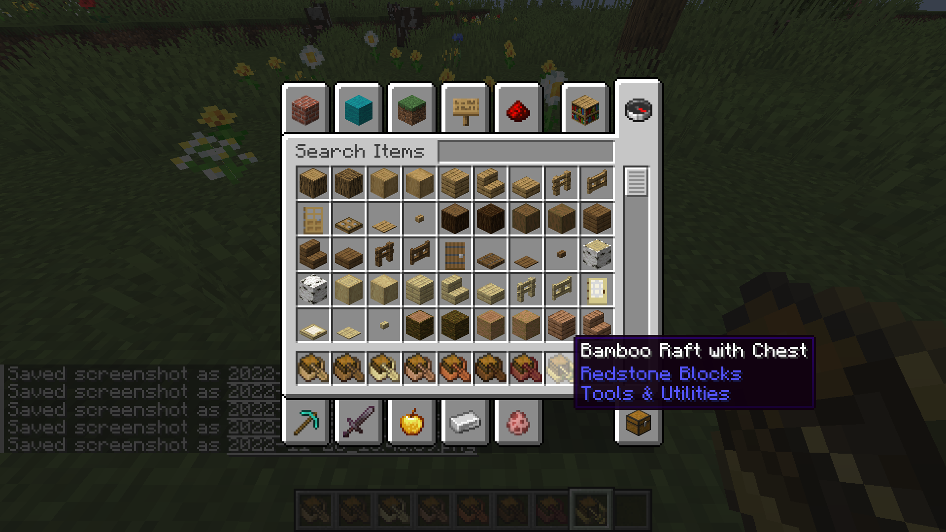 In the newest snapshot (have not checked other snapshots) the NBT data for showing what tab a boat is in is different for oak boats with chests and bamboo rafts with chests. These two boats say that they are in both "Tools & Utilities" and "Redstone Blocks" while the other boats with chests are only in "Tools & Utilities"
