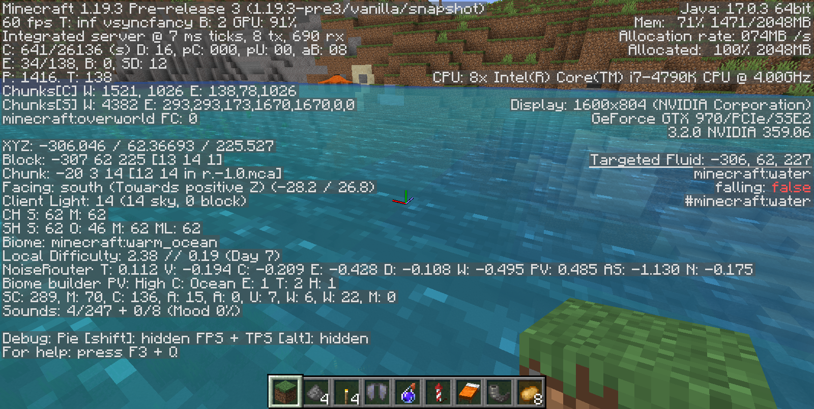 /fillbiome command leaves patches of the old biome when selecting large areas. Say for example you select an area of about 20-30k blocks, patches of the old biome remain unchanged. In this example a large areas was selected over an ocean and the /fillbiome command was used to changed it to warm ocean. You'll notice there are several patches of the blue ocean color that remain unchanged as does the biome itself in those areas.