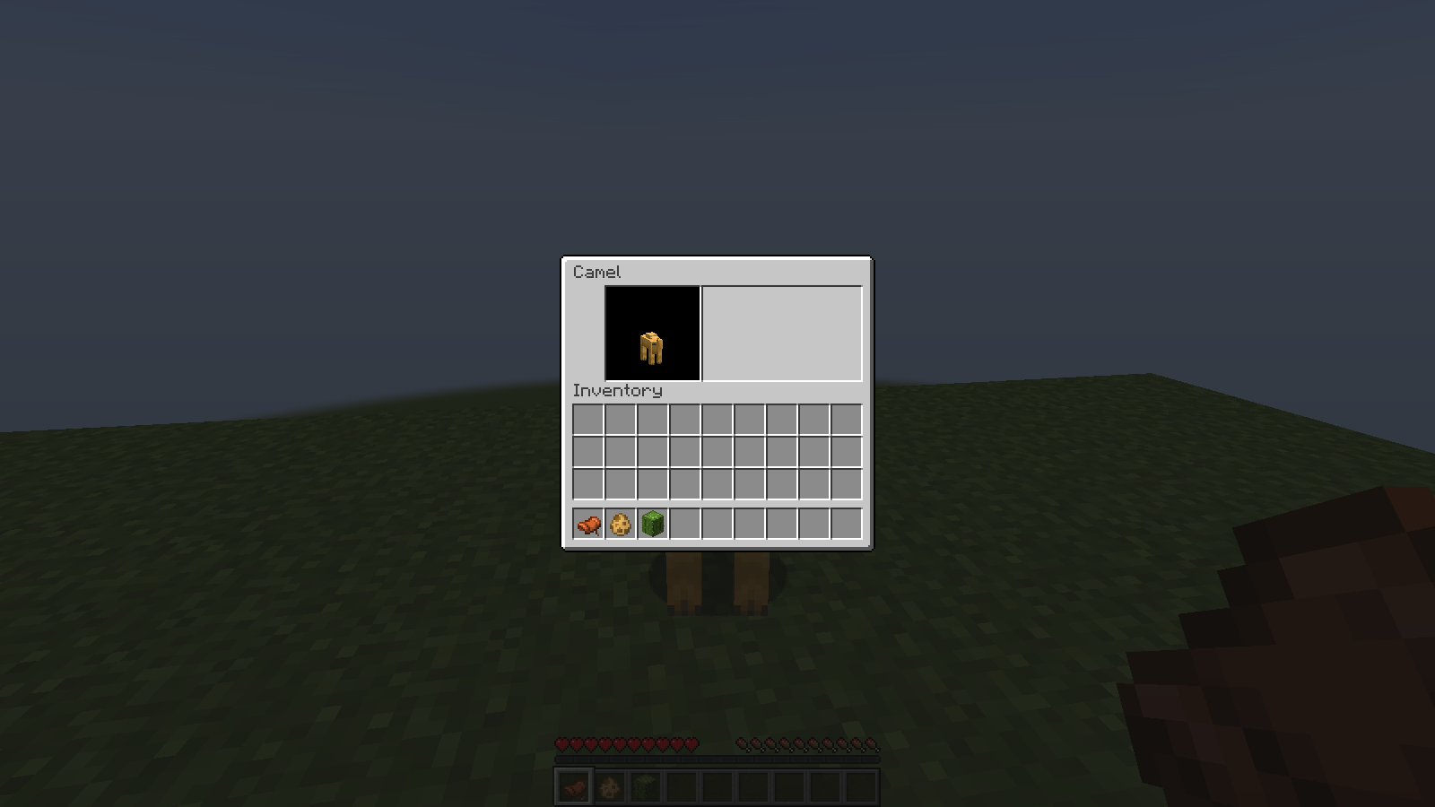 Pressing shift and right clicking on a baby camel shows a blank GUI to attach a saddle, unlike other mobs such as piglets.