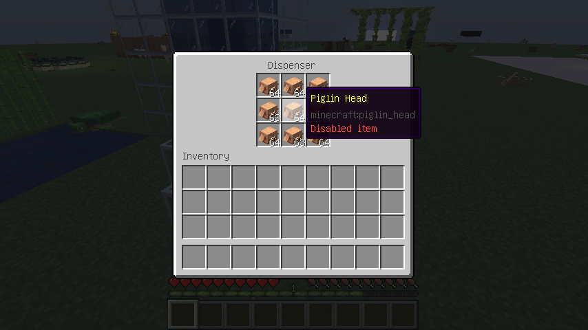 Players and some entities can use dispenser in non-experimental worlds to wear the piglin heads.