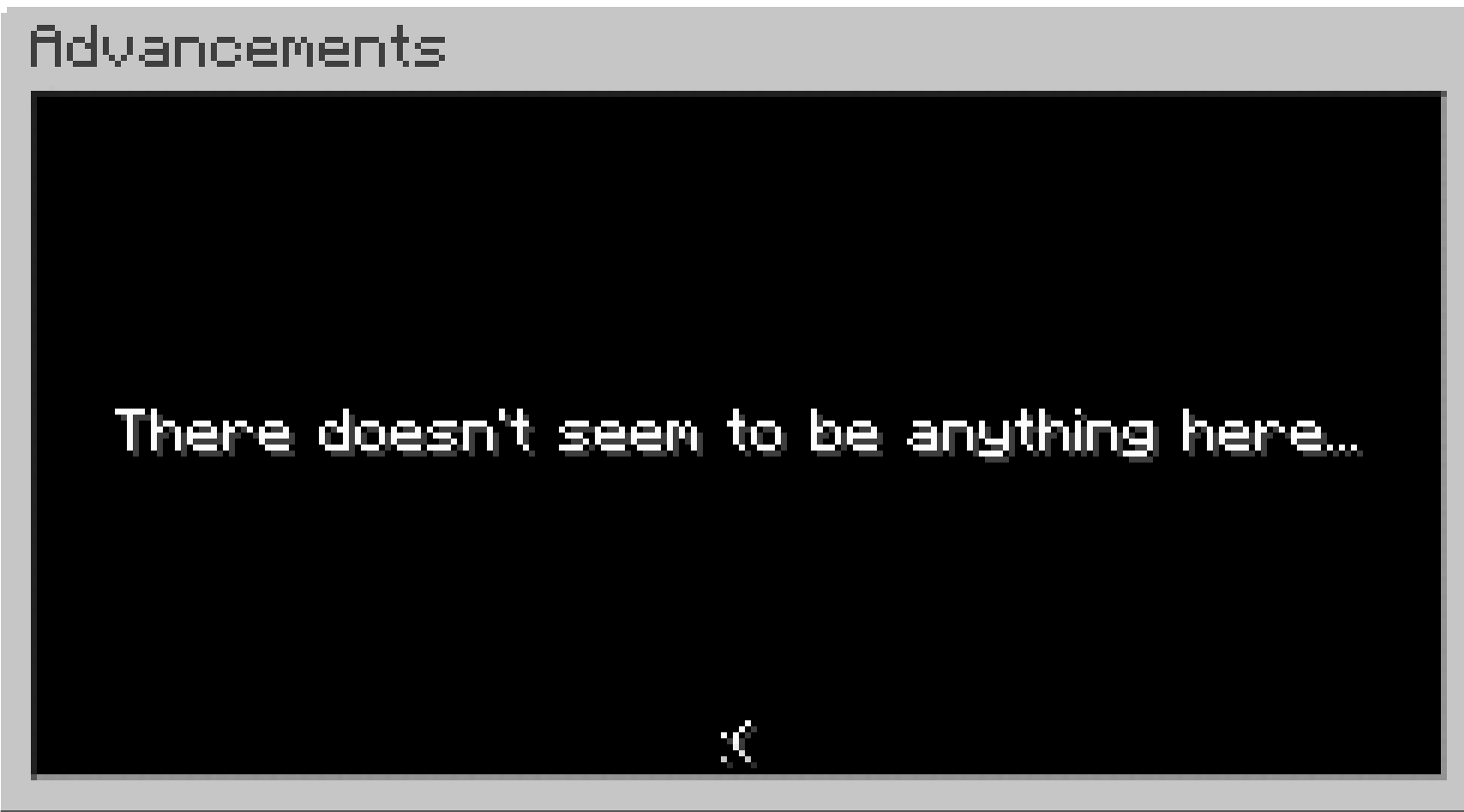 When I click on advancements in the game menu, nothing loads. After clicking I'm met with a message that says "There doesn't seem to be anything here.... 😞" Not sure if this is because it's currently being worked on with the new update, but I've updated my Minecraft and laptop to the latest version, so confused as to why the advancements show up on all the other versions but 1.19.3.