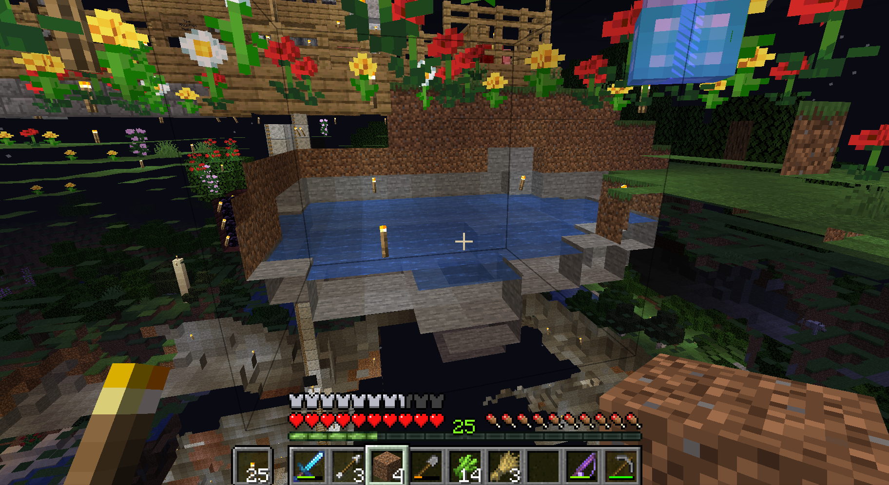 One more screenshot where I'm breaking the invisible dirt block; you can see the break lines, just not the block itself.