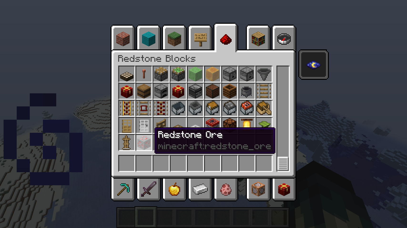 3. You'll see that `Deepslate Redstone Ore` IS NOT in this tab.
