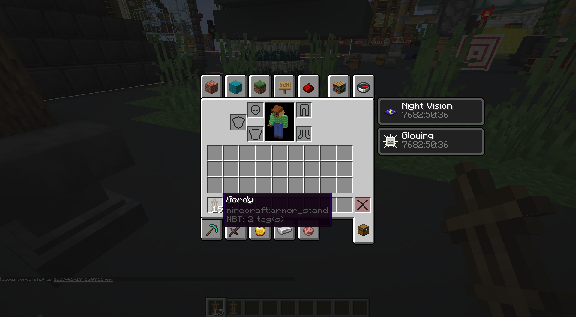 placing down armor stand with name and breaking it will cause item to not stack with original stack. see images.