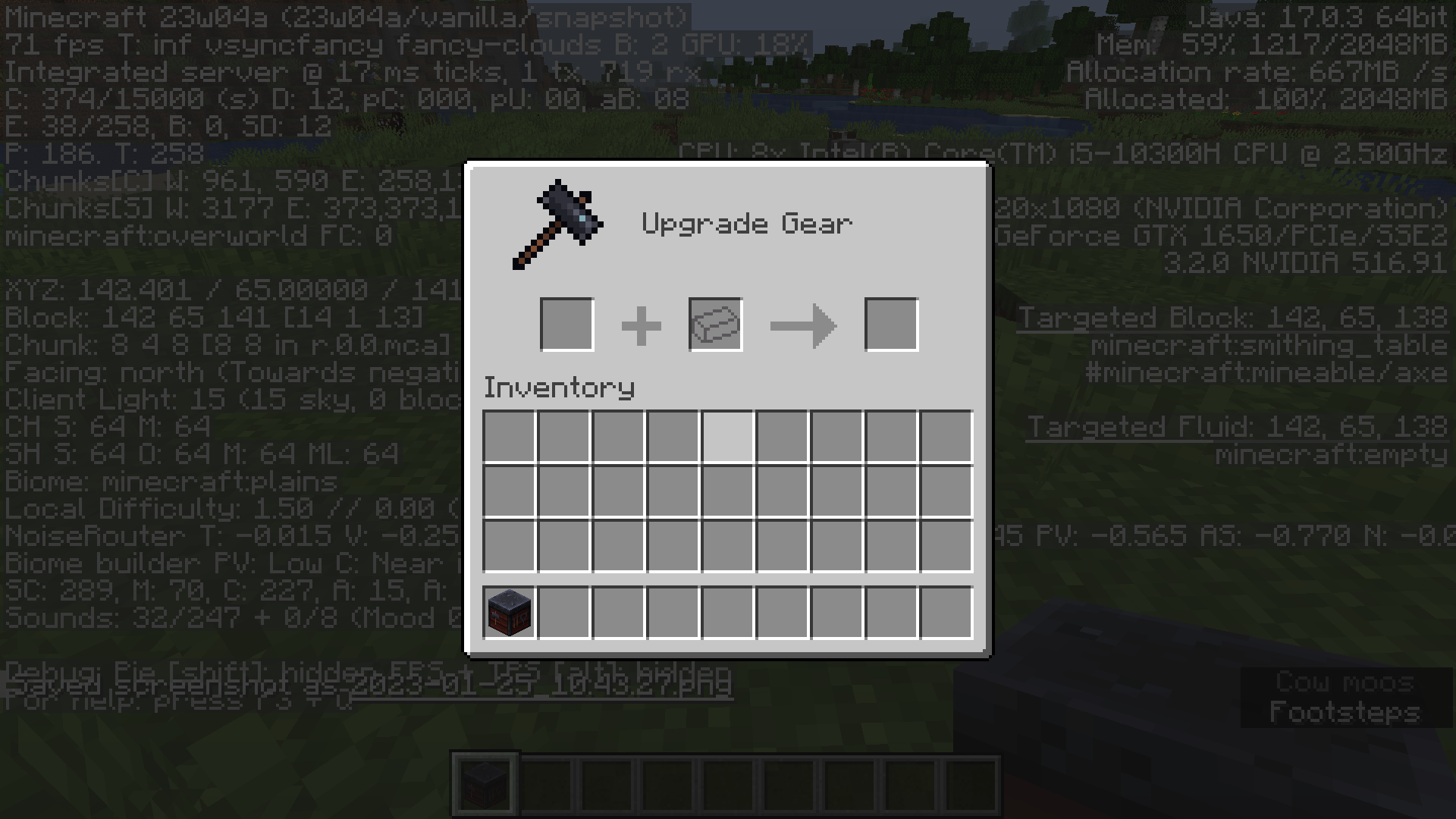 No Armor Trims in creative inventory; Smithing Table GUI not updated.