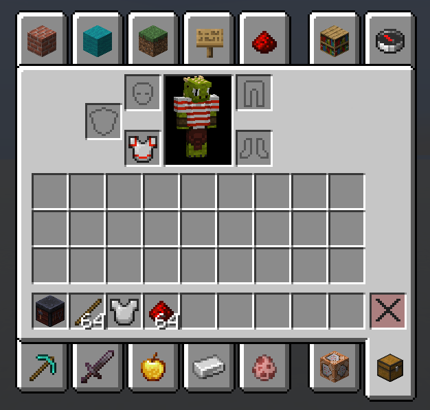 /give @s minecraft:iron_chestplate{Trim:{pattern:"example:stripes",material:"minecraft:redstone"}}Notice that the armor model is renderer correctly, but the inventory item has the wrong pattern.