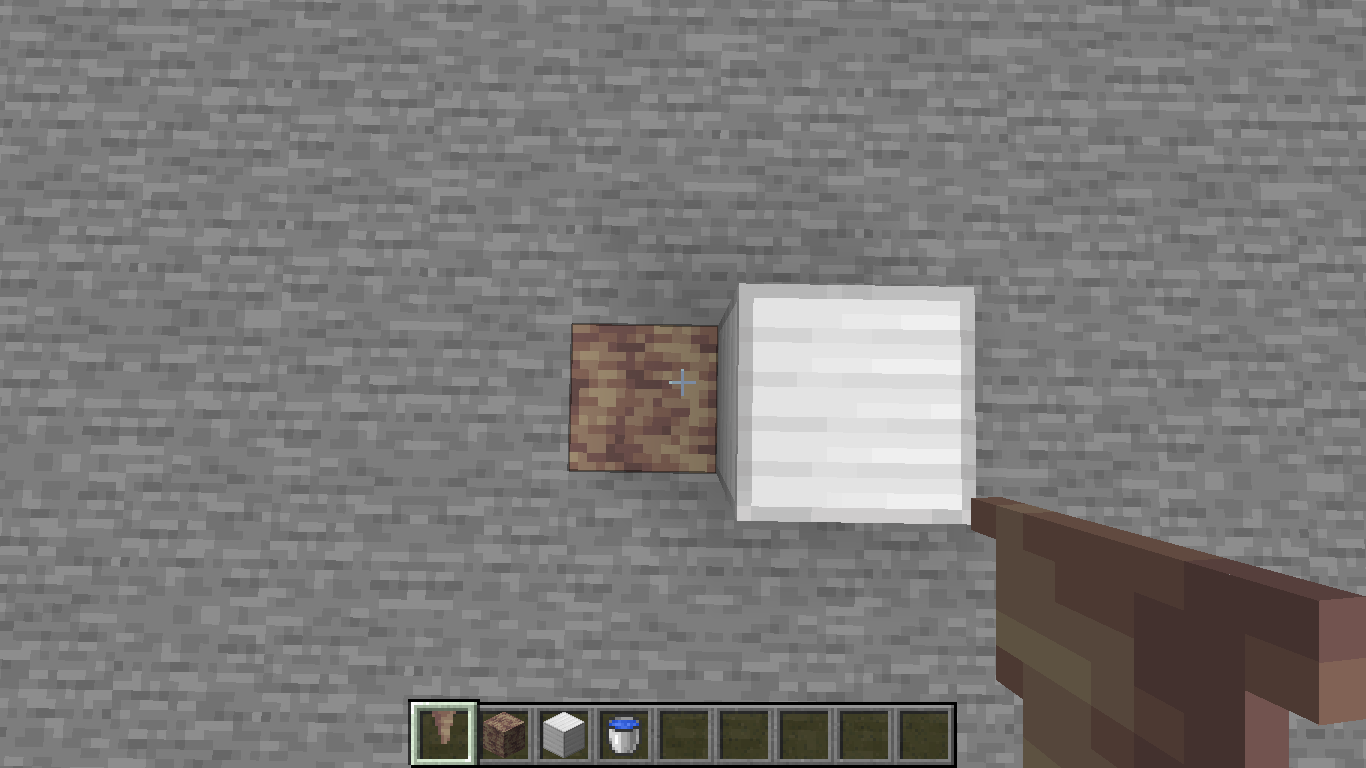 Crouch on the edge of the iron block so that the player is above the dripstone block. Do not shift the player's coordinates from now on.