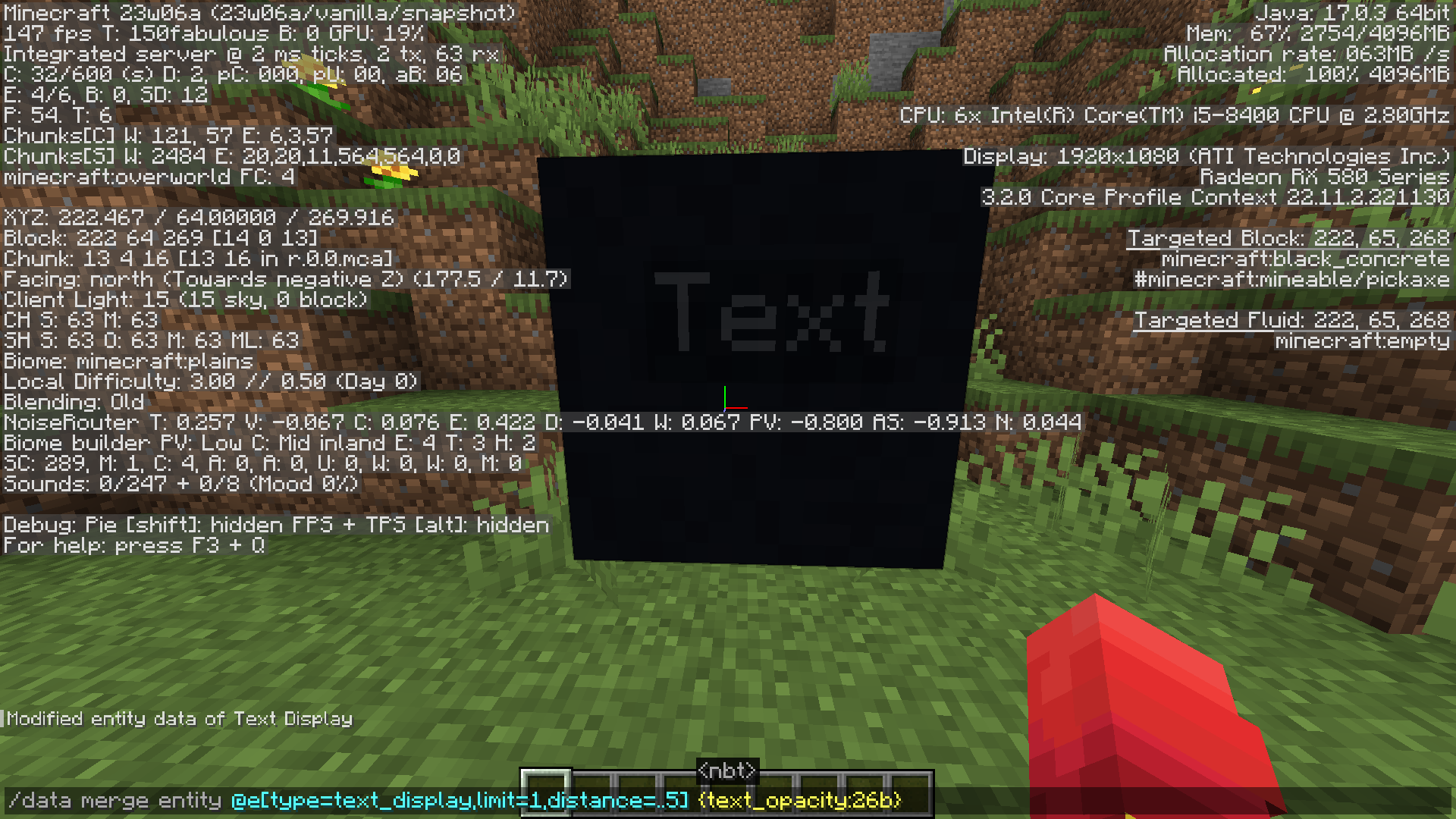 /data merge entity @e[type=text_display,limit=1] {text_opacity:26b}