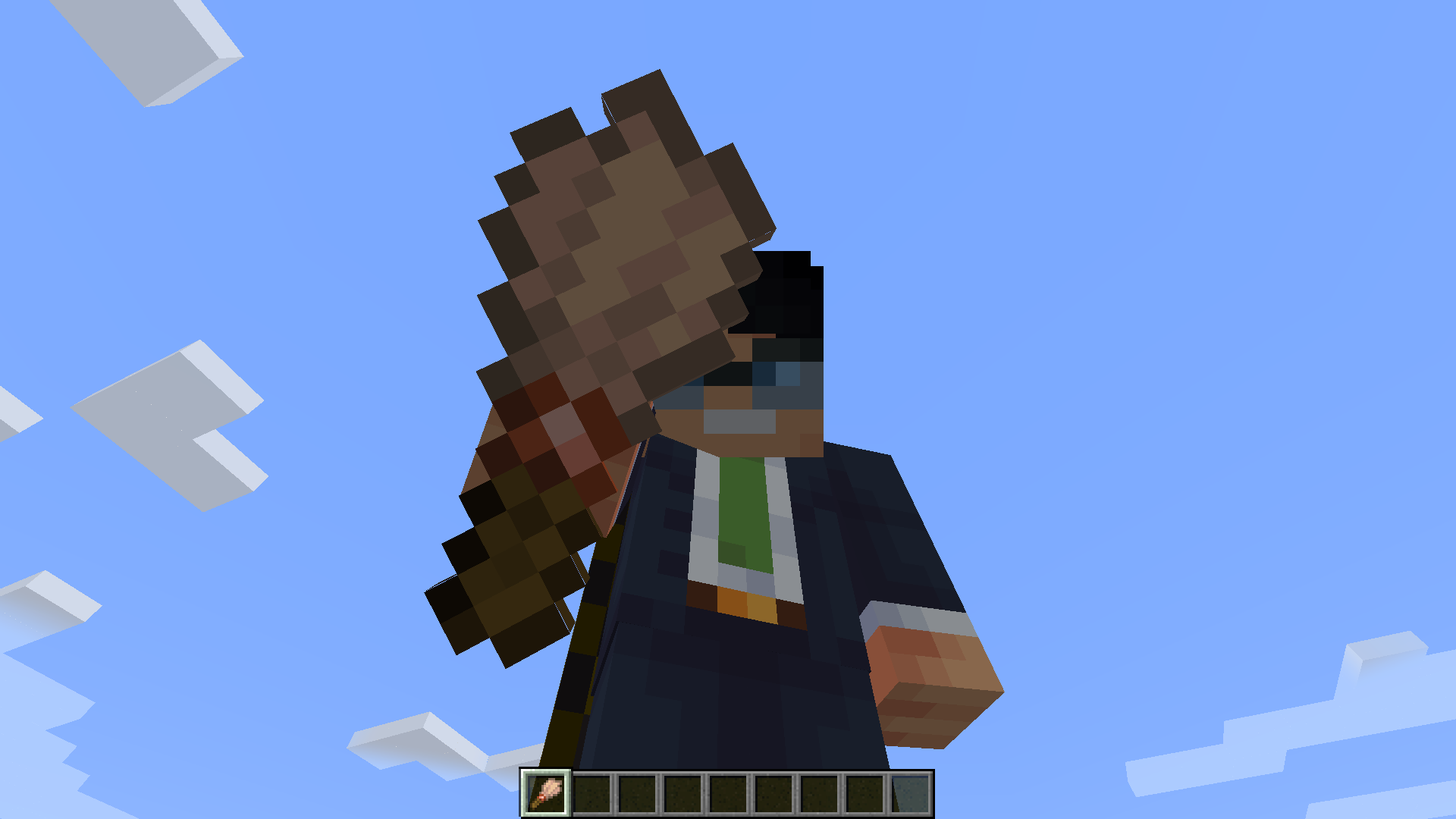 When seen in third person view, the player model holds the brush by the ferrule instead of the handle, and even touches the bristles. This is more apparent when the brushing animation is played, the handle will appear to move more than the bristles.