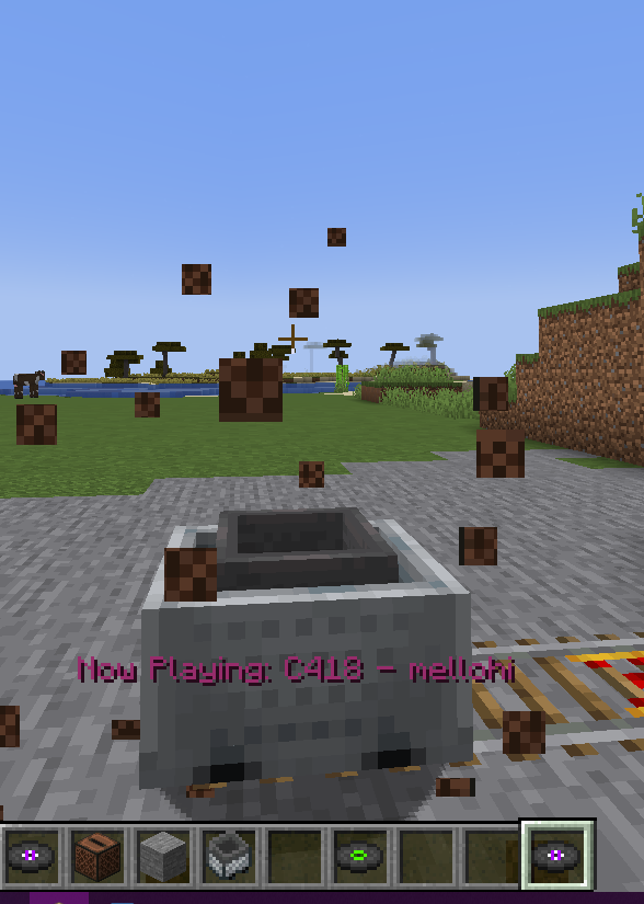 Place the C418 – mellohi music disk in the jukebox