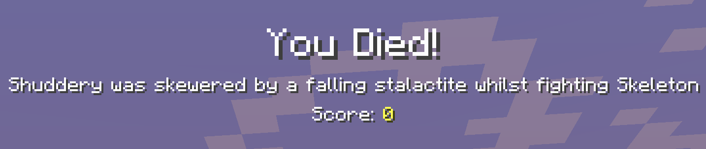 "Player was skewered by a falling stalactite whilst fighting Skeleton"