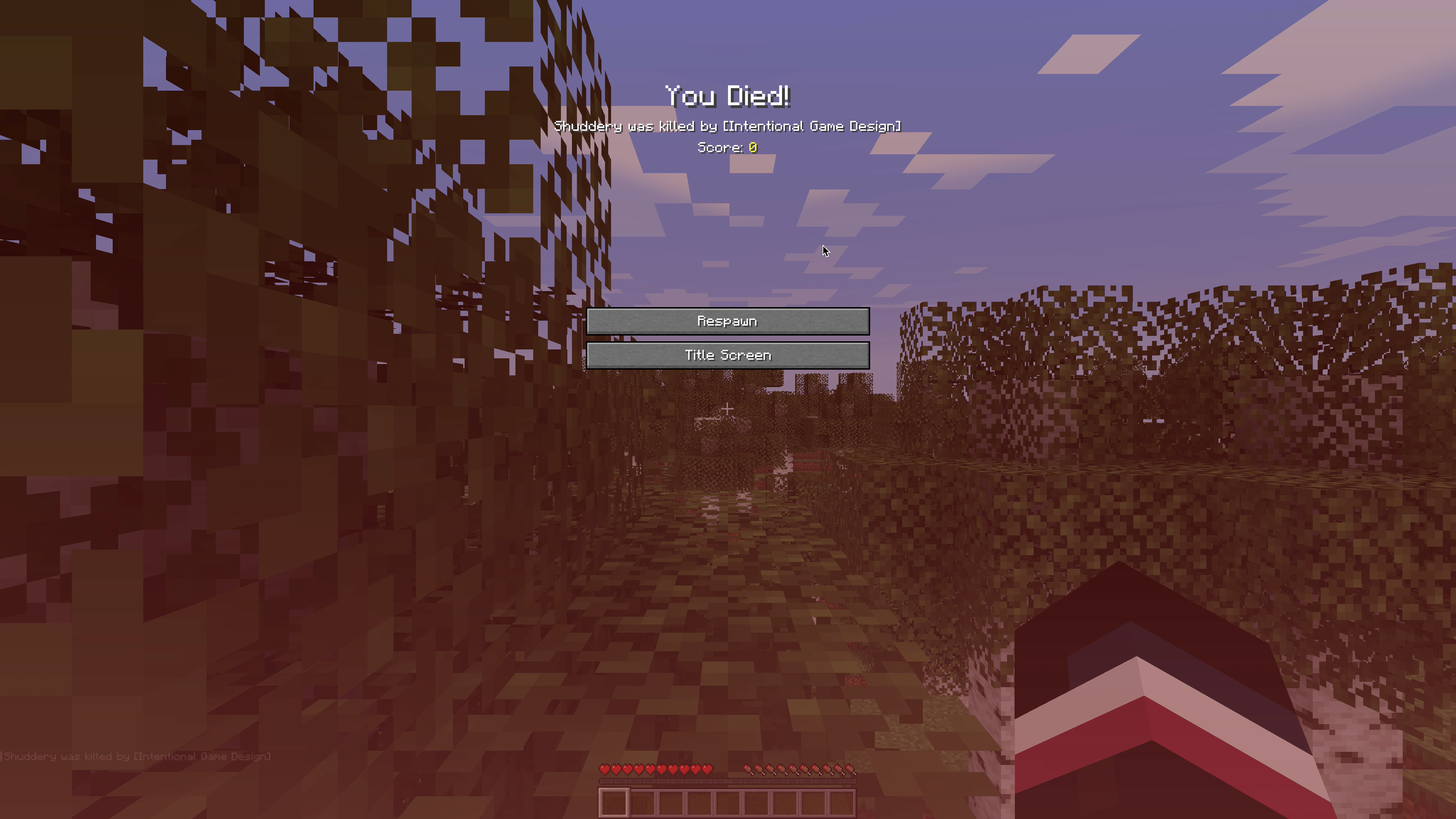 3) In the Death screen, first click Respawn and, as it greys out, press the "Intentional Game Design" link