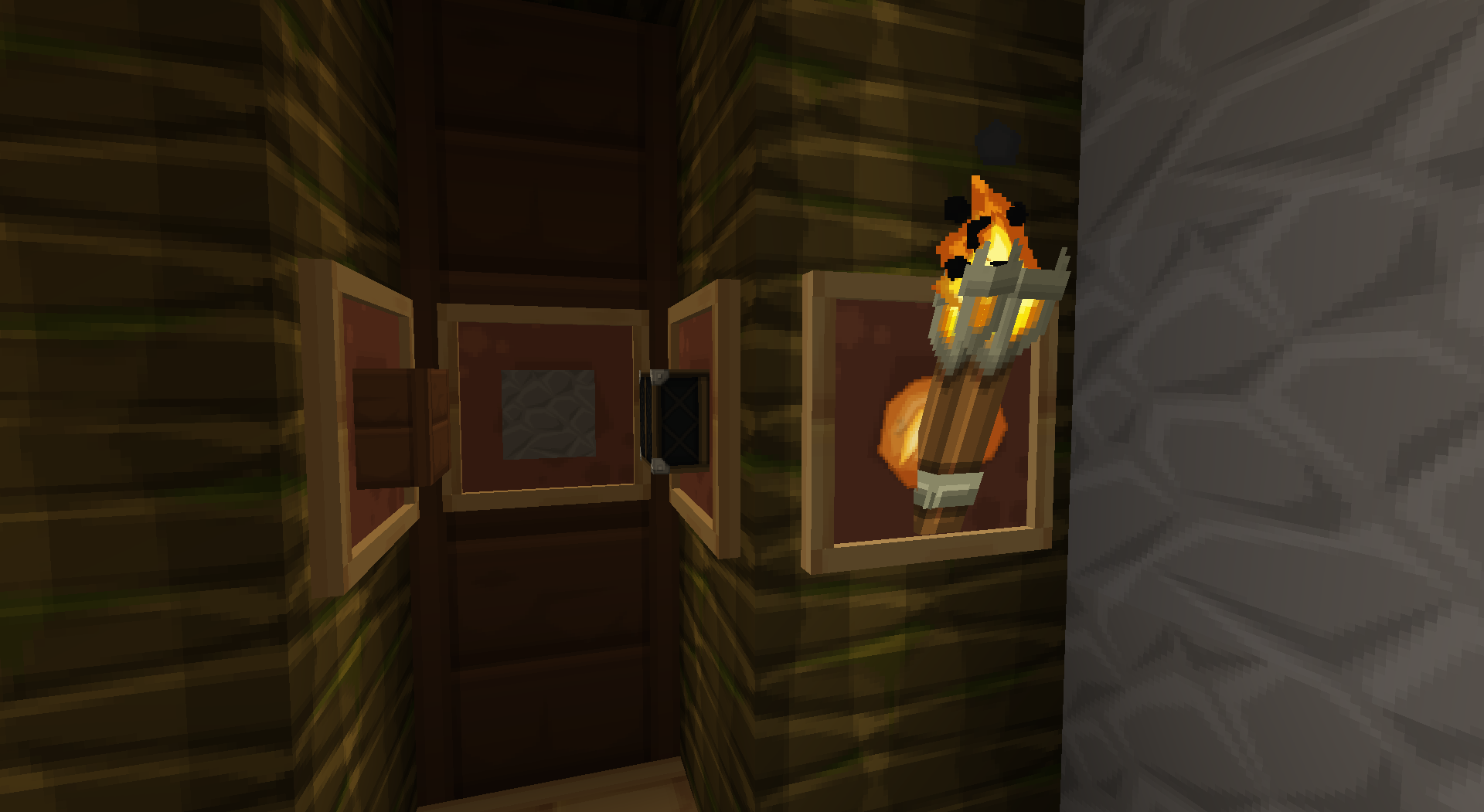 Screenshot Details: Shows the overlapping of frames in a single space, with a torch overlapped on the side. Tested also that torch could be places in the nook, as well as ladders and redstone torches, etc.