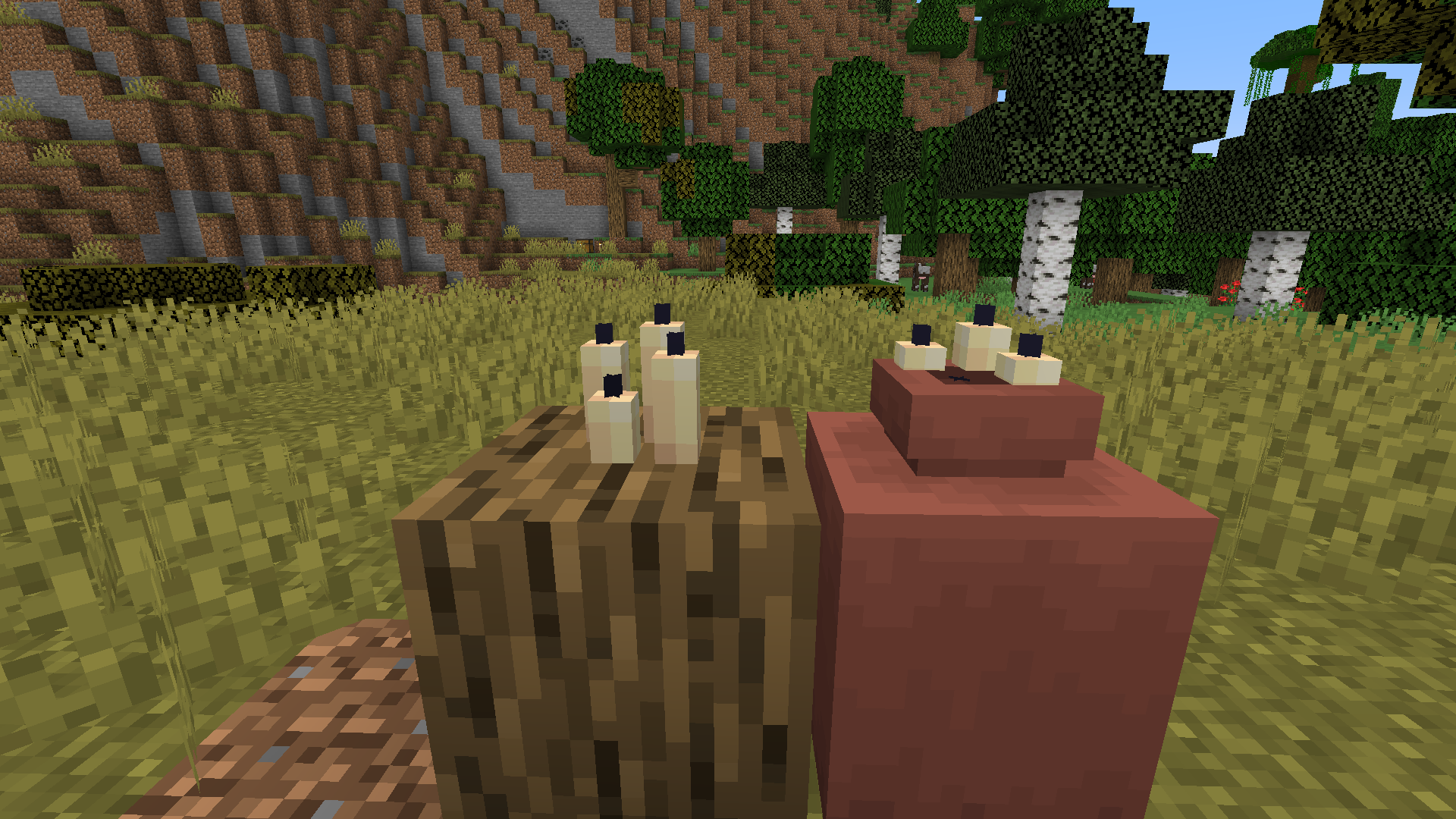 Attached is a difference between candles placed on a block, and candles placed inside a vase. The fourth candle of the vase is not visible.
