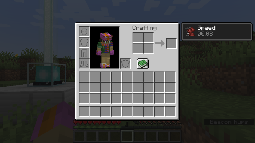 When in the range of a beacon, a chosen status effect will indefinitely apply to a player.