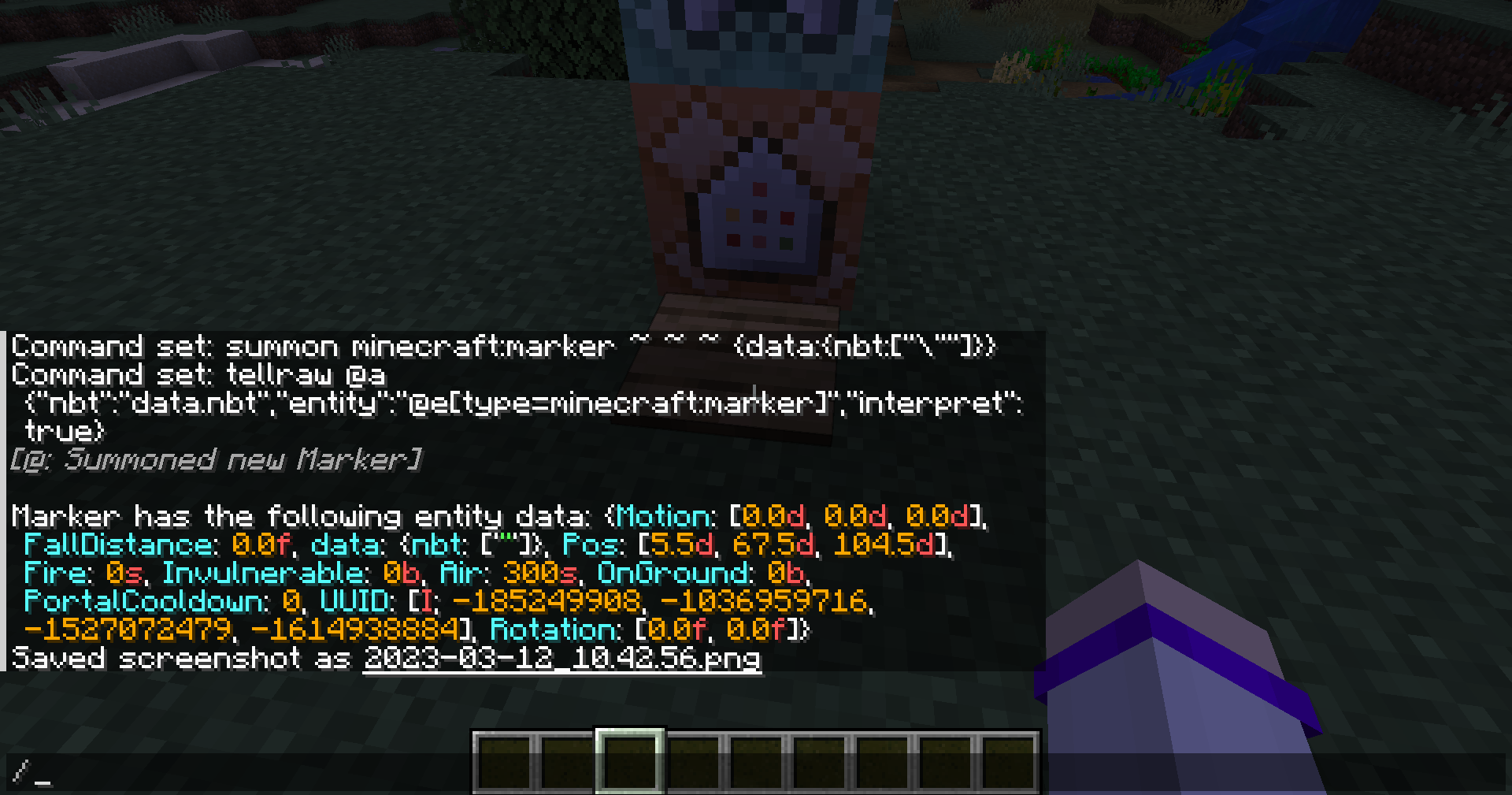 2. /data get entity @e[type=minecraft:marker,limit=1]