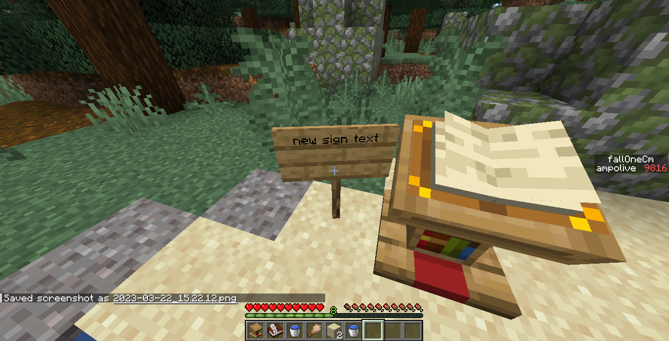 Players can now edit signs in adventure mode. This is inconsistent with the behavior of other blocks in adventure mode, which mostly cannot be altered by the player.