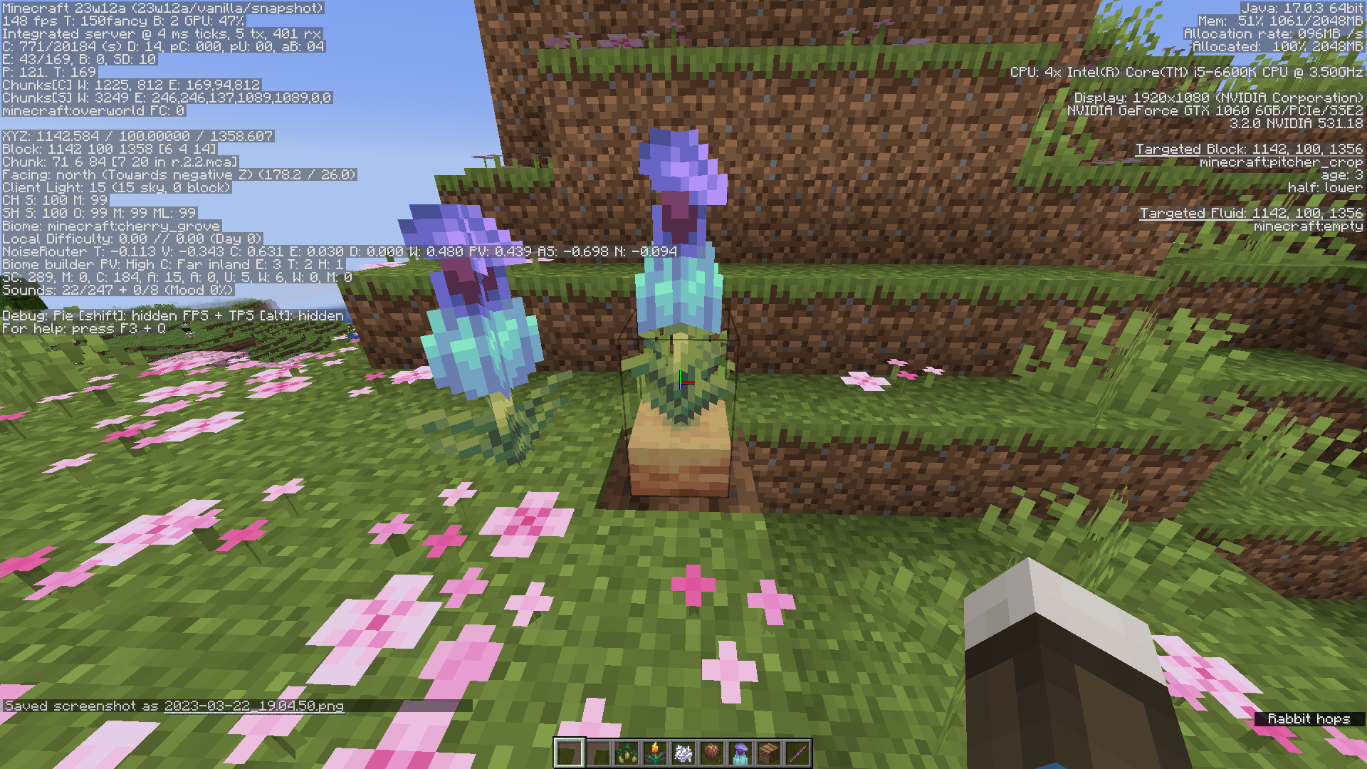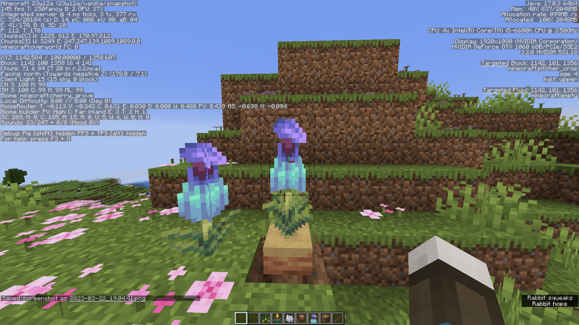 When a pitcher crop advances to age 3, its upper stage becomes tangible and can be targeted. If the player then uses bone meal on the upper hitbox, the plant's top half will advance to age 4 but the bottom remains at age 3. Updating the blocks next to the lower half does not resolve this. Additionally, bonemealing the lower half will always correctly advance the age of both halves.