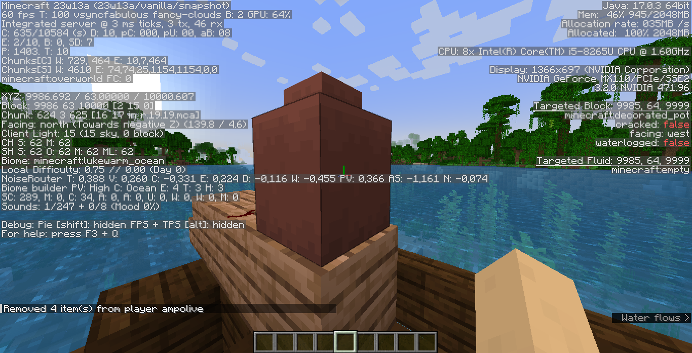 Left click the pot with the debug stick.
