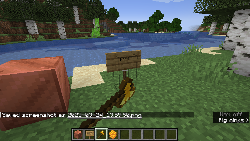 Holding an axe and right clicking on a sign which has been previously waxed will not result in the wax being removed.