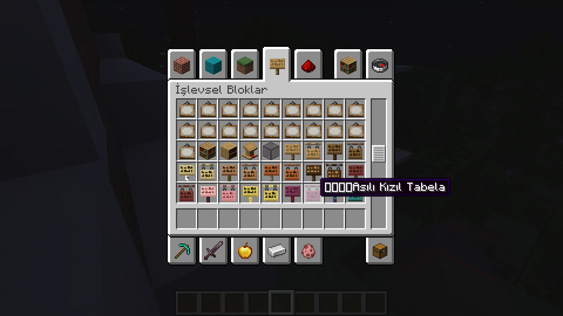 In the Turkish language the crimson hanging sign item has weird square type of symbol at the start of the name,now I will put an english screenshot of the game and the turkish screenshot of the game aswell for the difference