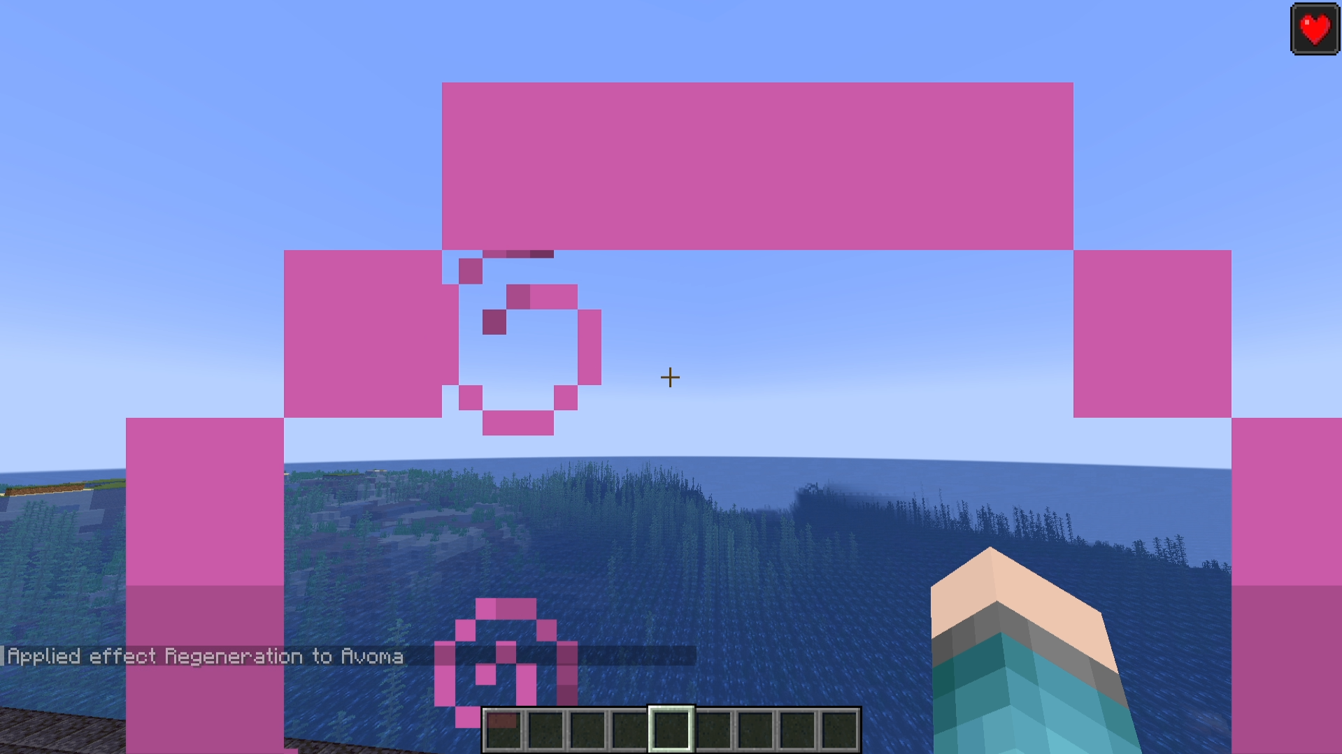 Switch to first person and give yourself a potion effect by using the command provided below.