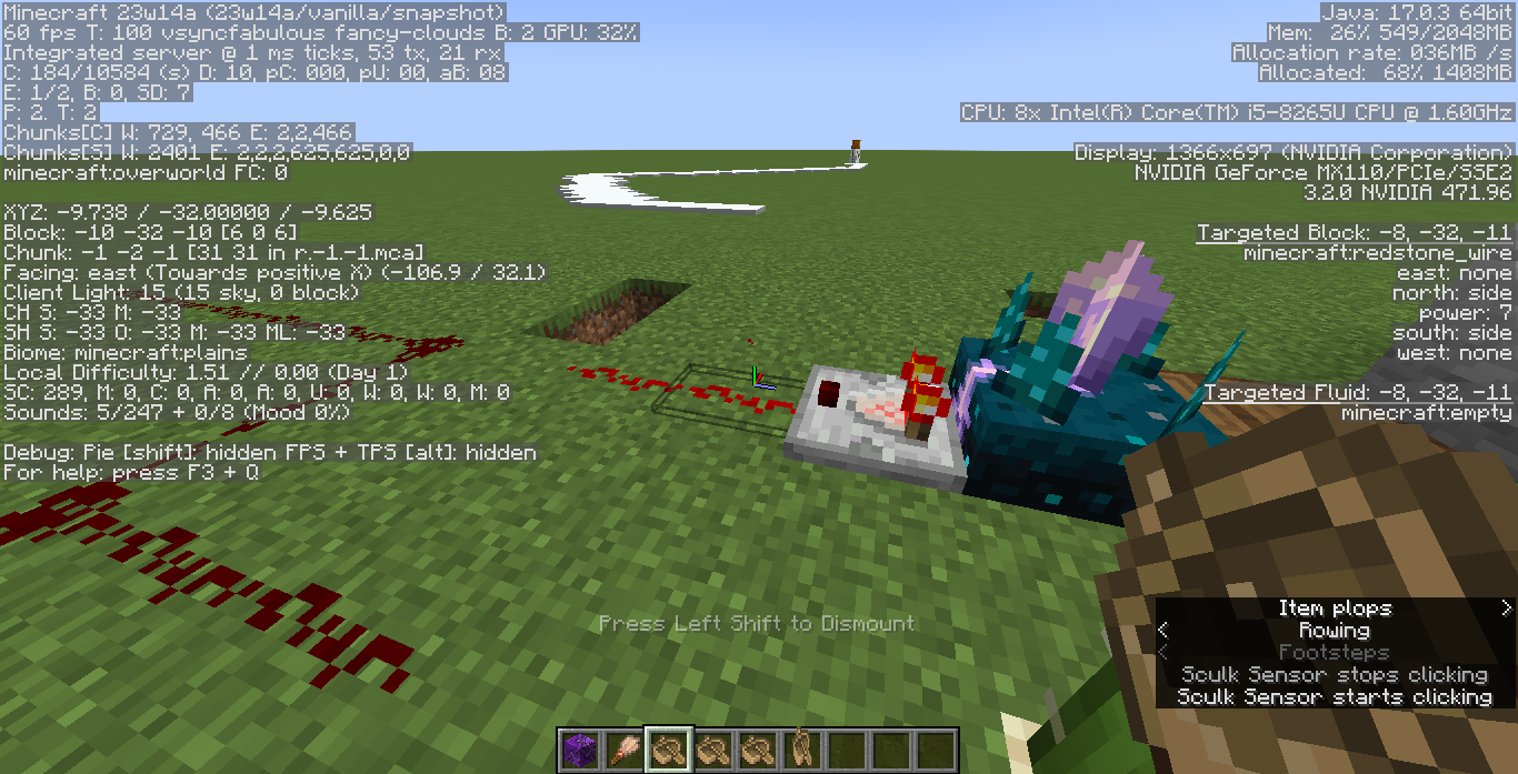 Boats and items will emit vibration levels of 7 for getting damaged, but will never emit vibration levels of 15 for dying under natural circumstances. To reproduce, power the amethyst side of a calibrated sculk sensor fully, then destroy an item and a boat with burning/cactus damage. Notice that neither will produce "death" vibrations, despite doing so using the /kill command.