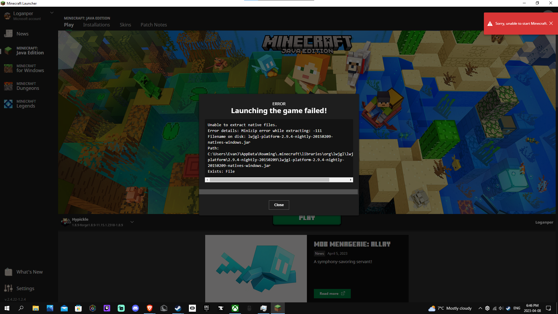 Your Minecraft version is outdated. We currently take issues for version 1.19.4 and the latest snapshot.