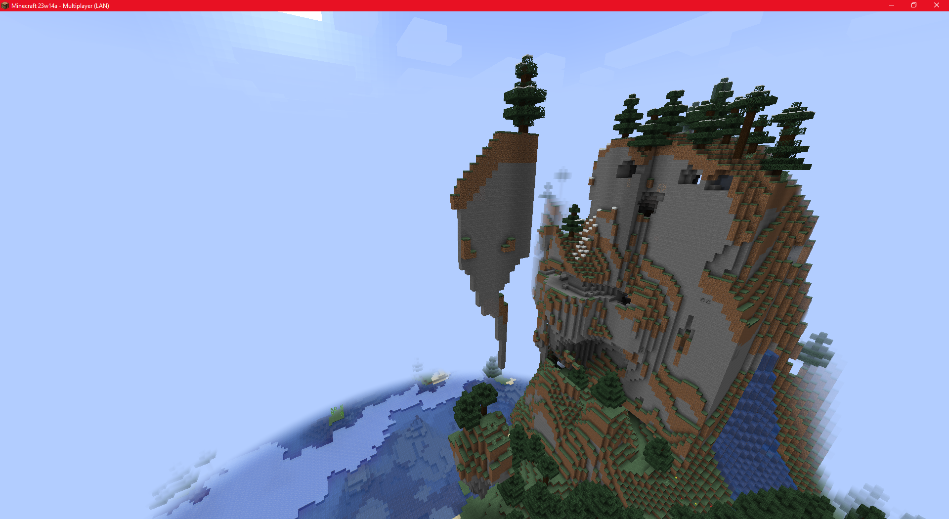 The world generation spawns multiple parts of terrain on top of each other (separated by trees).
