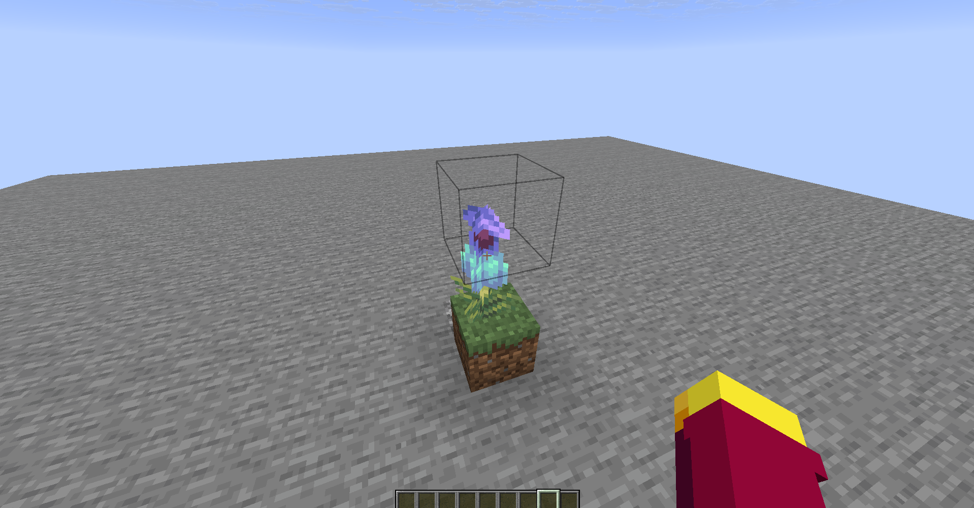 Its hitbox, according to the bedrock, should be randomly placed in the block (to match the placement of the flower) and have dimensions of 6x6x26 pixels.