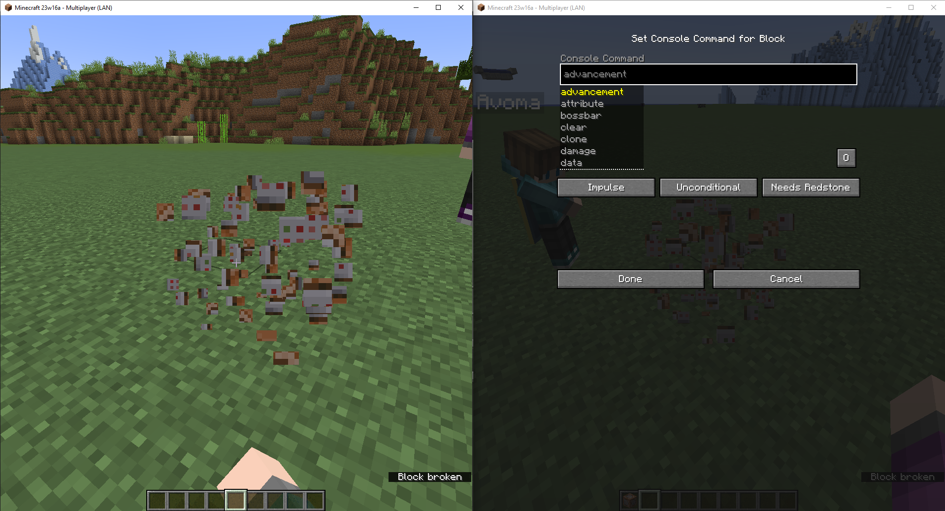 The command block GUI remains open.