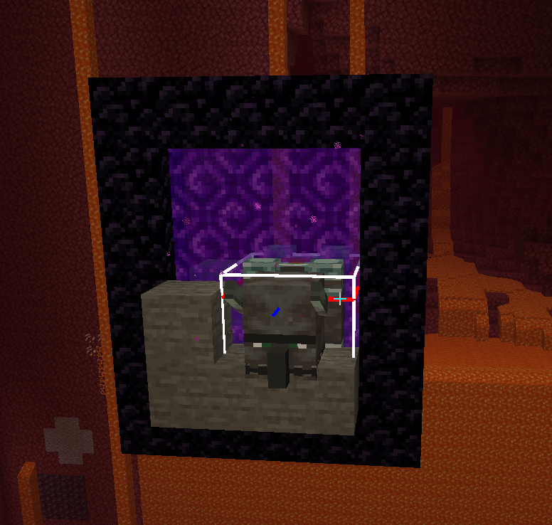 Screenshots were taken in 2 different worlds exit portal in both of them in exact replica while entry portal varies. This causes horses, donkeys, ravagers to suffocate in one instance while not in the other one.