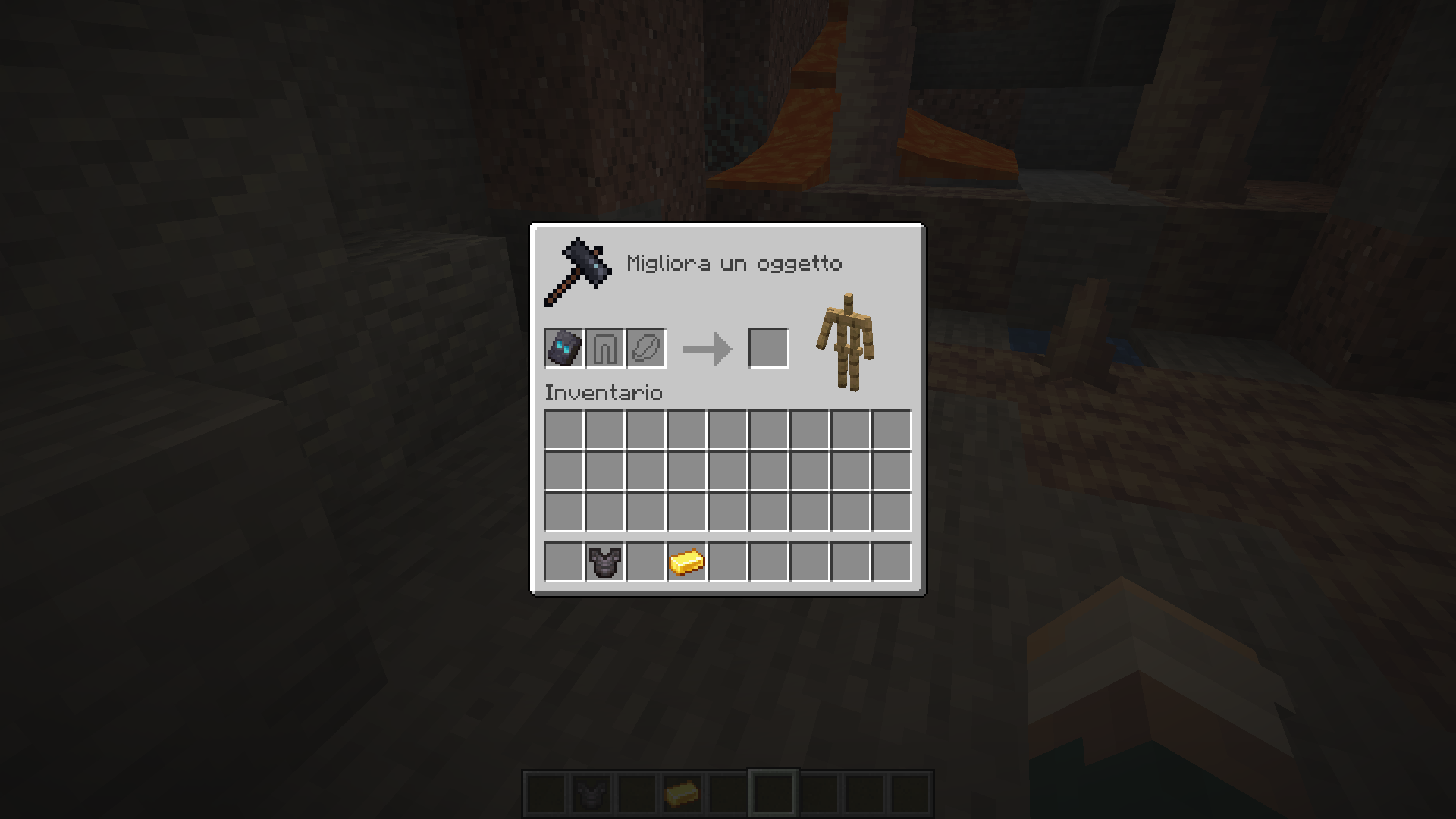 Slot icons only show when I put as first the smithing template (image 1). When I put the armor piece first, it shows only the smithing template icon but not the material one (image 2); I found the same behavior when I put the material first (image 3).