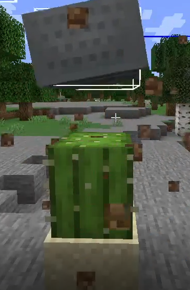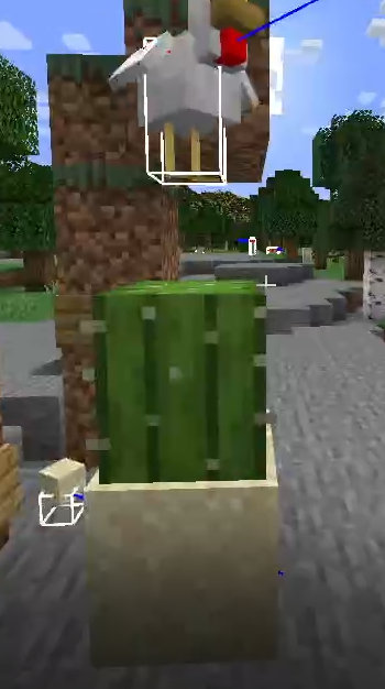 The chicken, despite having a much slower falling speed, was able to respond to damage later than the cart, which, pictured, reacted to the cactus 2 ticks earlier than the others and from farther away.