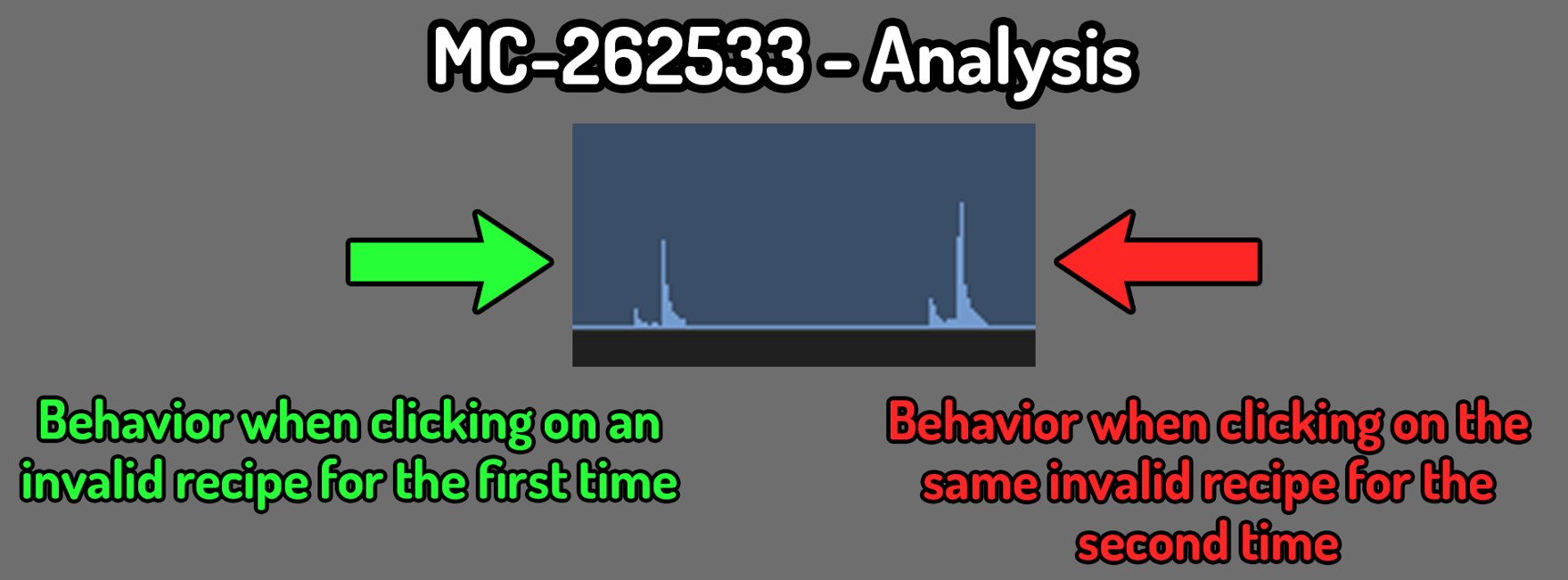 Take note as to whether or not the "minecraft:ui.button.click" sound is played louder after clicking on invalid recipes in the recipe book more than once.