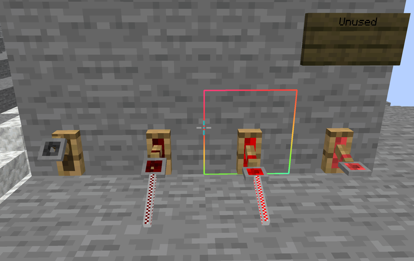 P.S. you can still get the “tripwire_hook_on” model in your world through use of a debug stick. Here is what all the tripwire hooks look like with a texture pack, the last one being “tripwire_hook_on”: