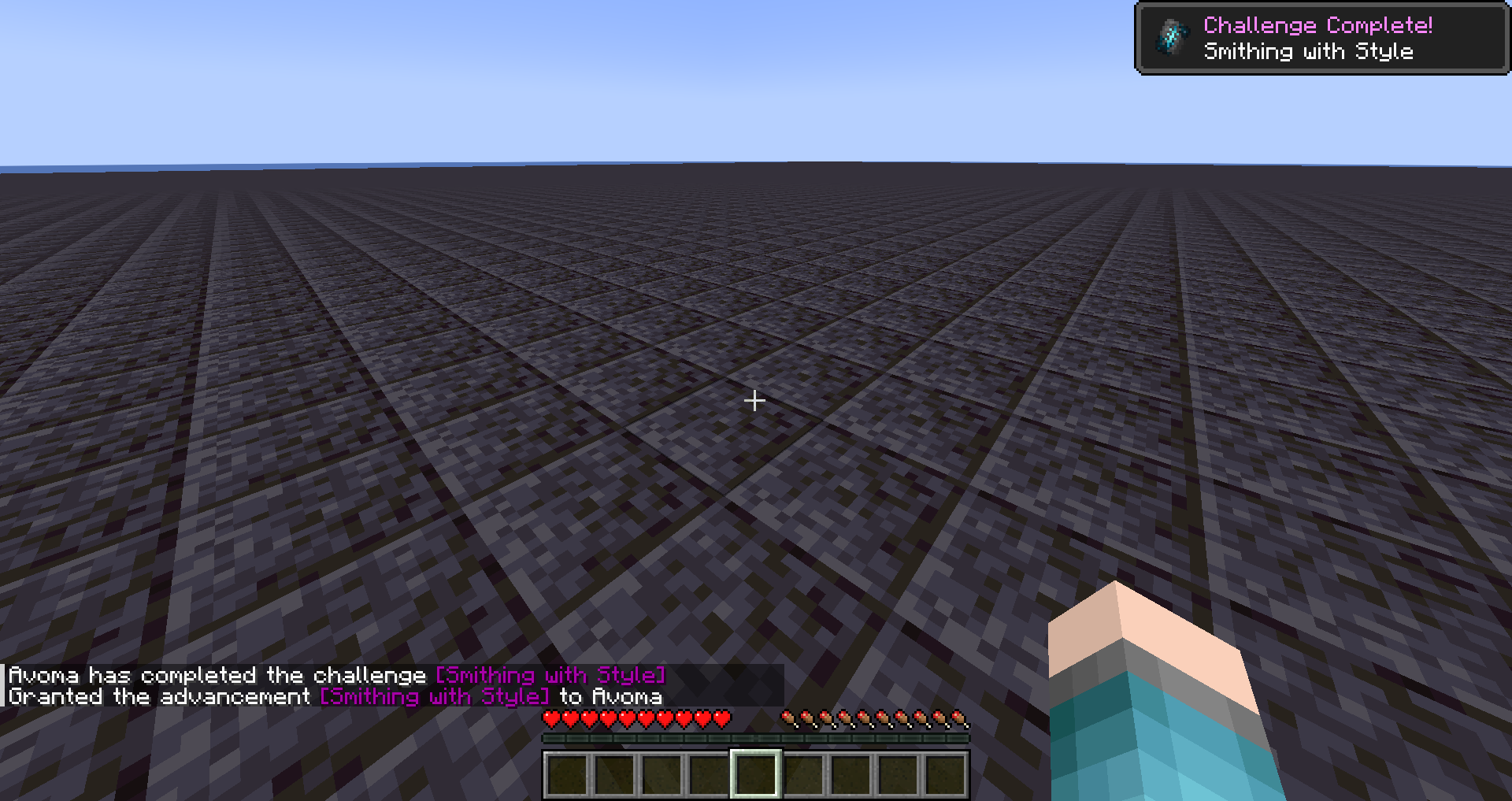 Switch to survival mode and grant yourself the "Smithing with Style" advancement by using the command provided below.