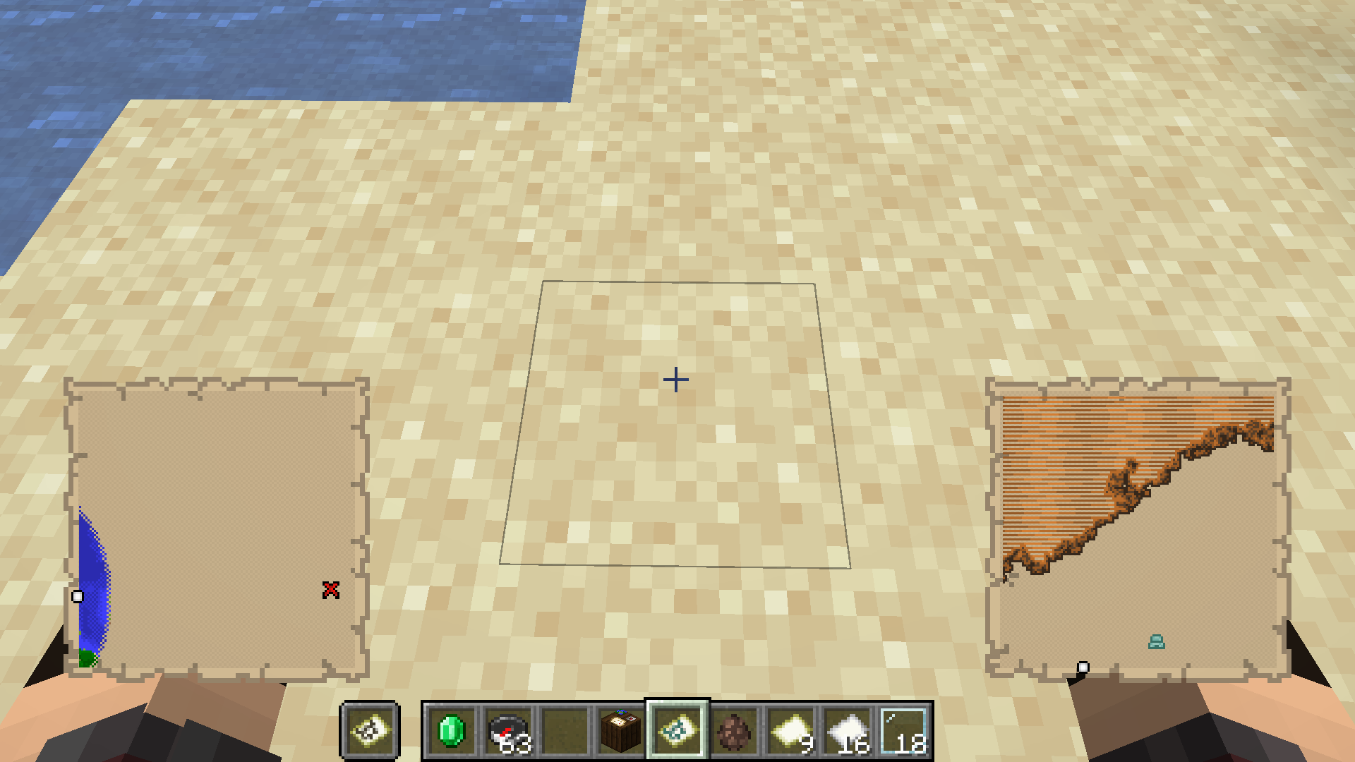 -4392674995263788285and run the following command:/execute in minecraft:overworld run tp @p -155 49 -74Open the chest at the given coordinates, then look at the map. Notice that there is no relief showing where the oceans are.