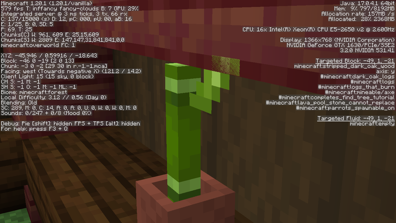 Potted bamboo and stairs z-fighting when stairs placed on potted bamboo and has next block states: