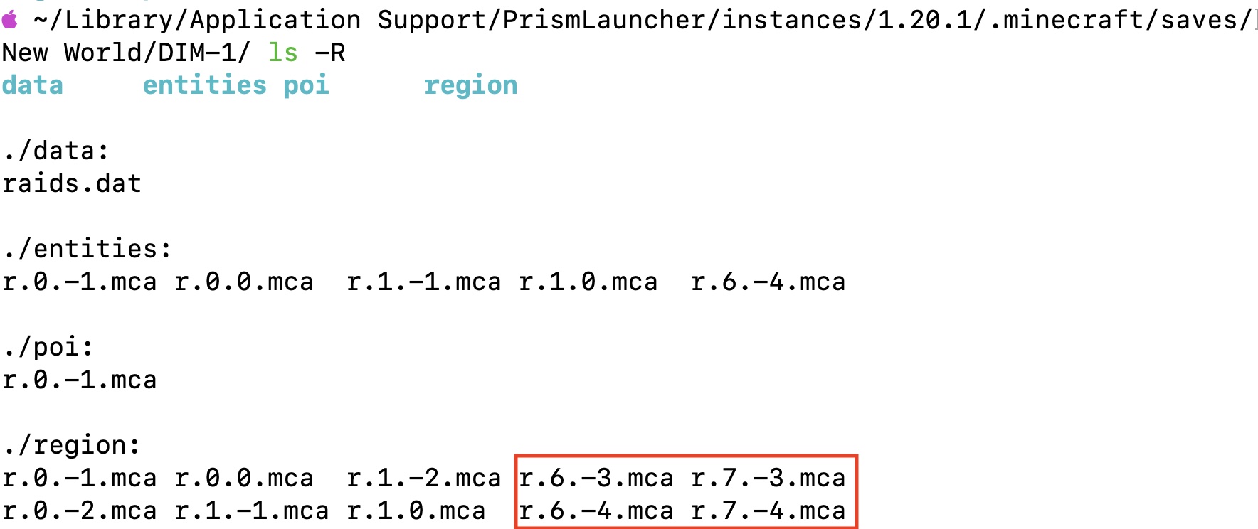 Check generated chunks in the saves folder