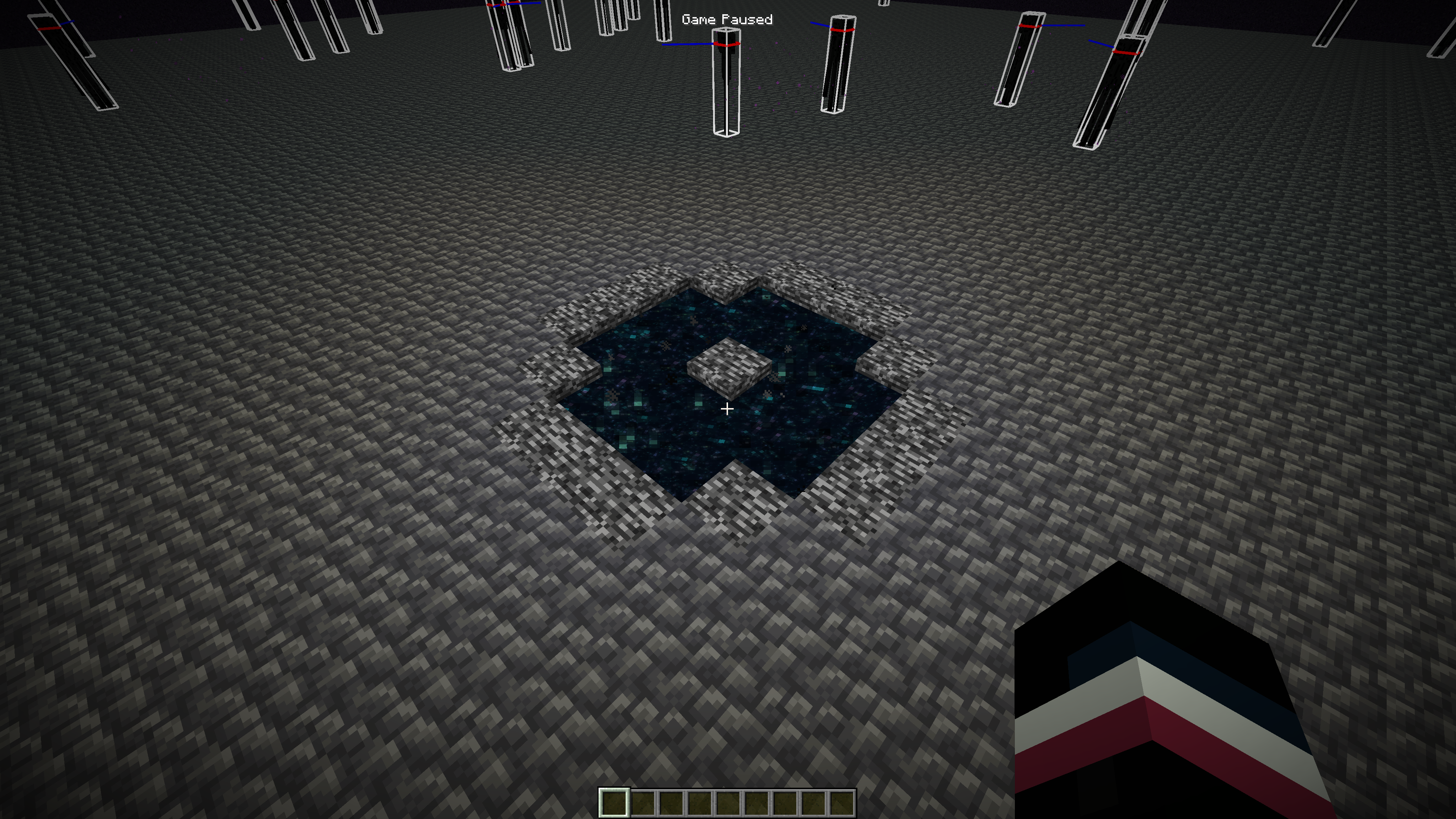 6) Notice that the dragon's end portal has spawned at the very top of the world placed with the fill command.