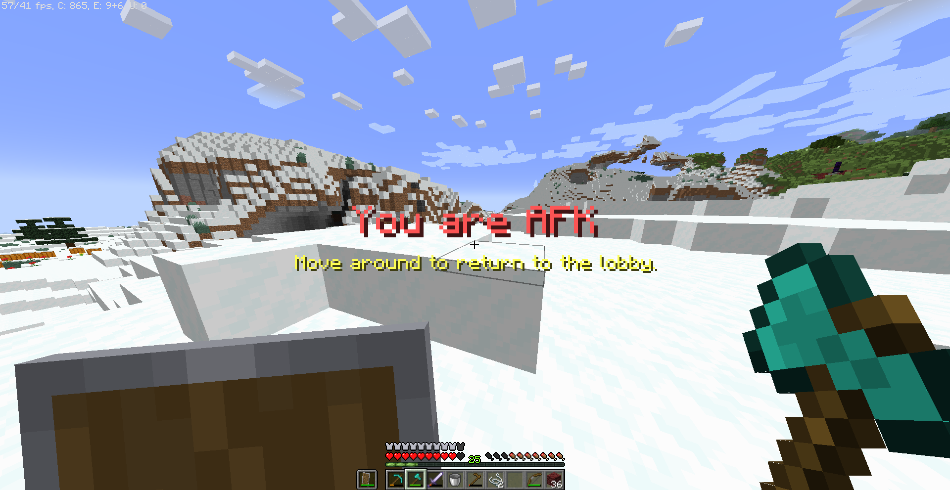 So, as you can see from the screenshot, I was playing on Hypixel when I got the usual AFK message. I paused the game immediately and disconnected, then joined my single player world, and got this text. I don't know if you can fix it, it isn't major, but it would be nice if you did. By the way, I don't know if it is permanent, I reported this bug as soon as I saw it.