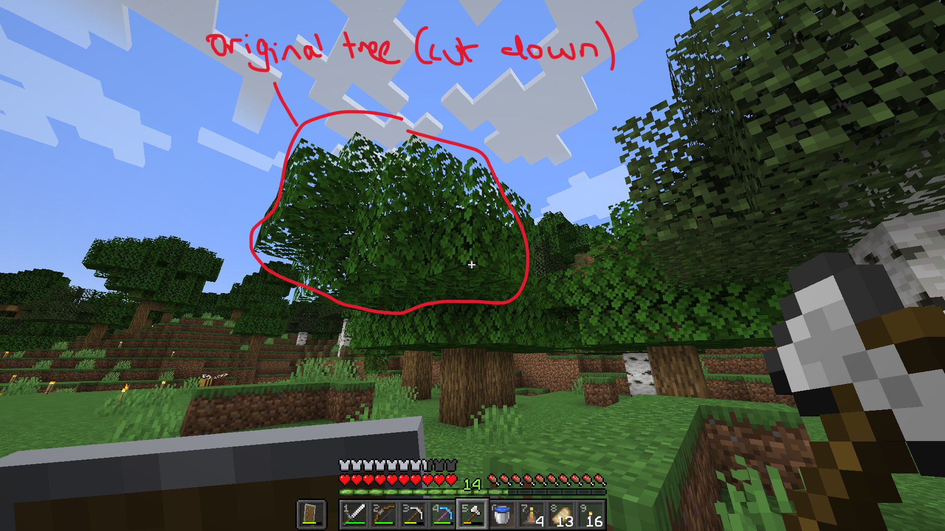 Only happens when leaves are adjacent to another tree with logs. (I have checked that I have fully chopped down the original tree before posting this as a bug).