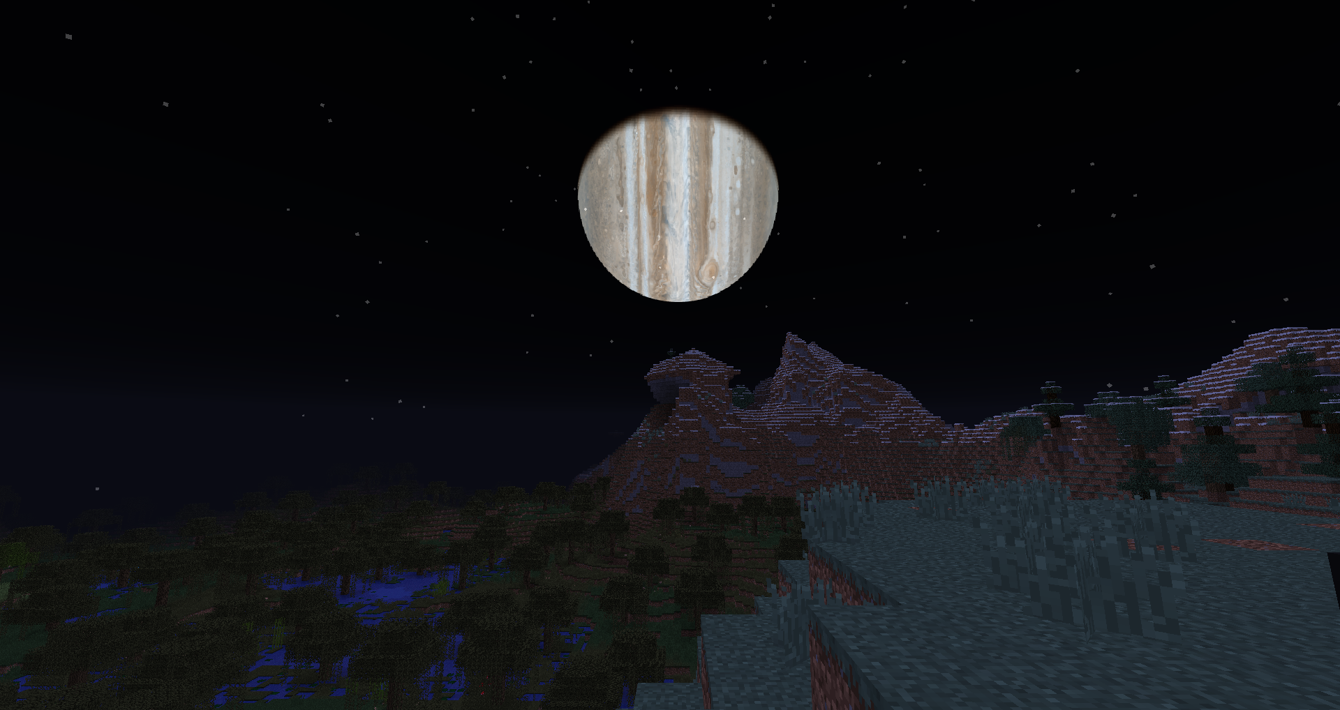 1. Enable the "Jupiter Moon" resource pack (it replaces the moon with Jupiter, also has a round sun)