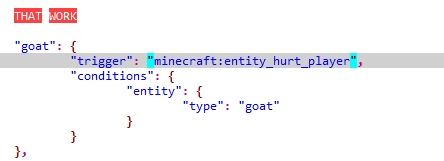 I used the blaze and caves datapack in version 1.20 and I realized that the achievement to die from a goat is impossible to complete. I looked into the datapack code, and realized that everything is fine there. Then I changed "minecraft:entity_killed_player" to "minecraft:entity_hurt_player" and it worked. I don't think it's right