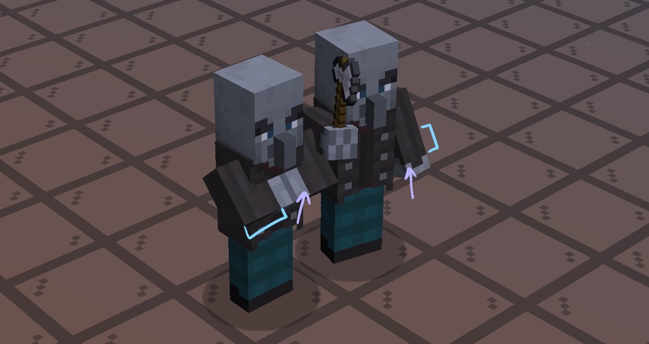 The vinicator has 2 separate sets of arms and the texture changes when it swaps between the two. With the arms extended, the sleeves have a line that goes all the way to the end of the sleeves and the ends are not straight. With the arms crossed, the line ends at the elbow instead of going to the end of the sleeve and the ends become straight.