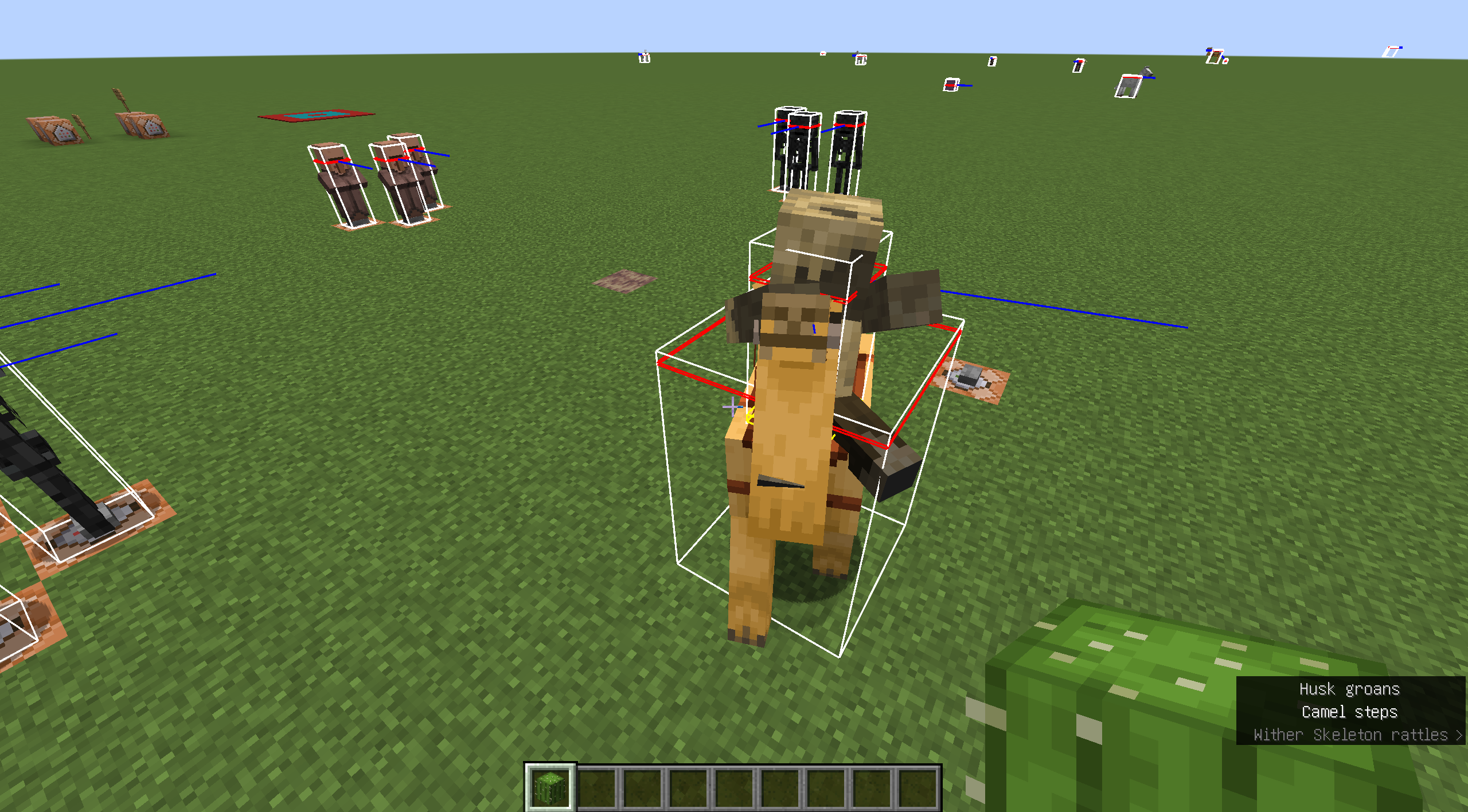 /summon minecraft:camel ~ ~ ~ {Passengers:[{id:husk}],SaddleItem:{id:"minecraft:saddle",Count:1b}}Use the following command to summon a villager: