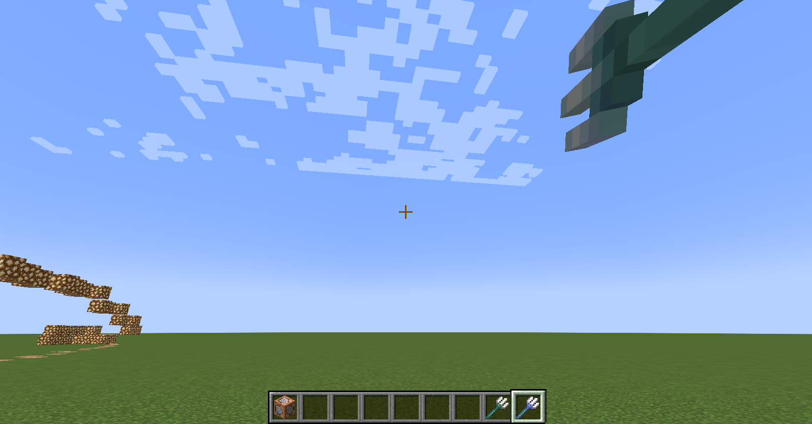 execute as @e[type=minecraft:trident] at @s positioned ^ ^ ^5 run setblock ~ ~ ~ minecraft:glowstone  Â